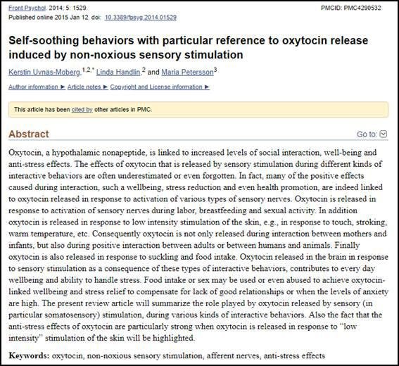 뇌에서 옥시토신이 분비되도록 하는 가장 좋은 방법이 스킨터치다. 이미 아기 원숭이가 먹이를 주는 손보다 얼굴을 부빌 수 있는 털이 달린 손을 선택한다는 것은 스킨터치의 중요성을 강조한 널리 알려진 심리학의 정설이기도 하다. 사랑하는 사람과의 스킨터치에 인색할 이유가 없다. 키스하고, 포옹하고, 머리를 쓰다듬어 보자. 옥시토신이 진정한 행복의 문을 열어줄 것이다.