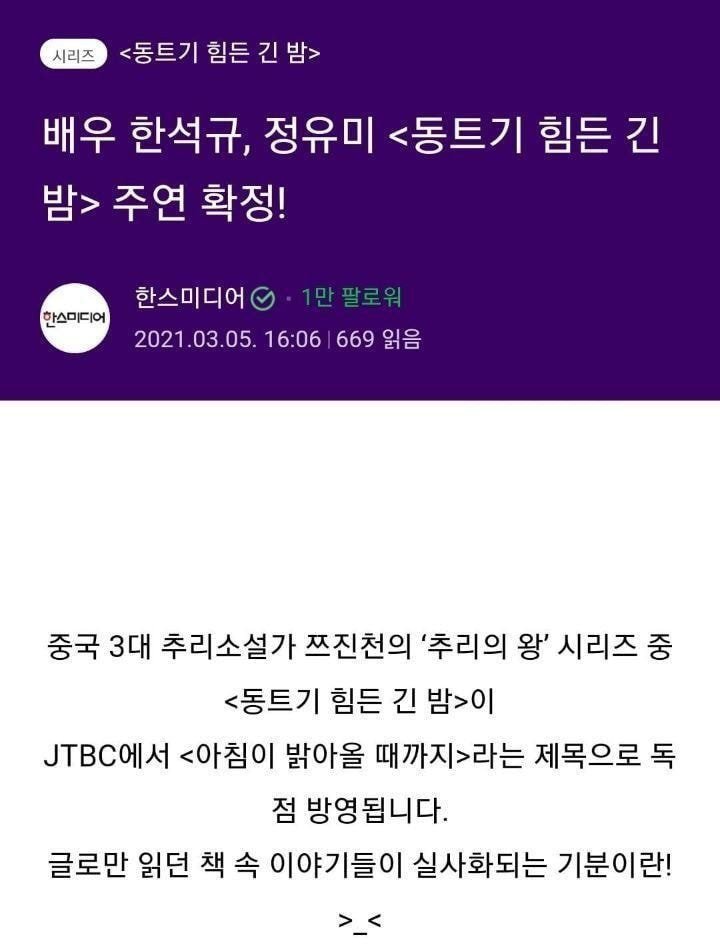 | tvN 새 드라마 또 또 중국자본 (+jtbc 새 드라마 추가) (0) | 2021.03.25 |