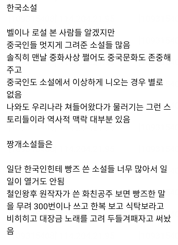 중국 소설에서 한국 음식을 한국 것이라고 표기하지 않고