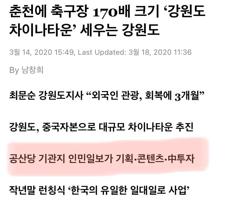 인천에 이미 있는데 그것도 땅 크기가 작은 우리나라에서 축구장의 170배가 넘는 면적에 중국마을을 또 왜 만든다는 거지? 그리고 홍보를 하겠다고해 ~ 참 아이러니하다 개뼈다구 같은 소리지