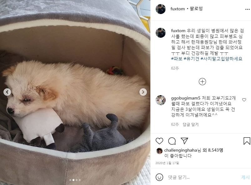 강아지는 피부병에 파보에 온갖 병을 앓고 있었고