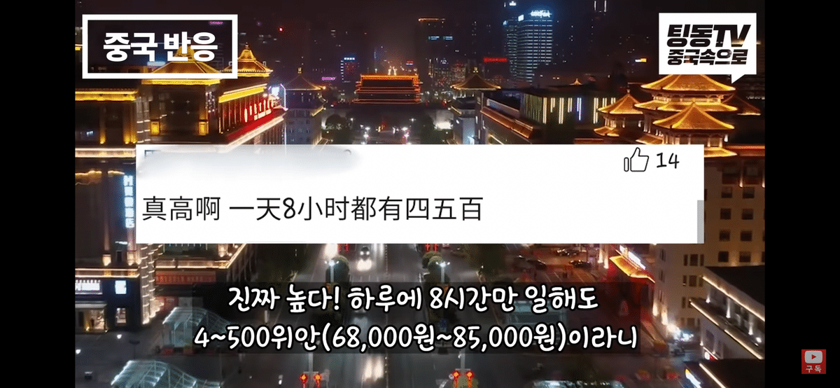 -> 在韩国每月赚取170万韩元的同时,中国做了什么?