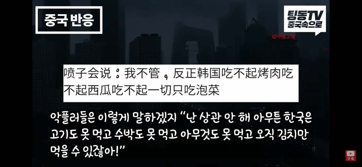 한국 김치는 60위안이 넘는데 월급 1000원 위안 받고 매일 먹을 수 있겠어?