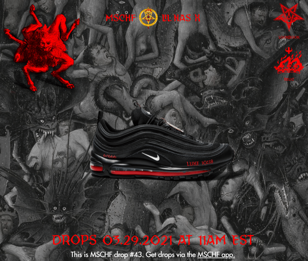 뮤지션 릴 나스 엑스가 디자인한 에어맥스 97 사탄의 에어솔에는 실제 사람 피 한 방울과 잉크 60cc가 들어갔음