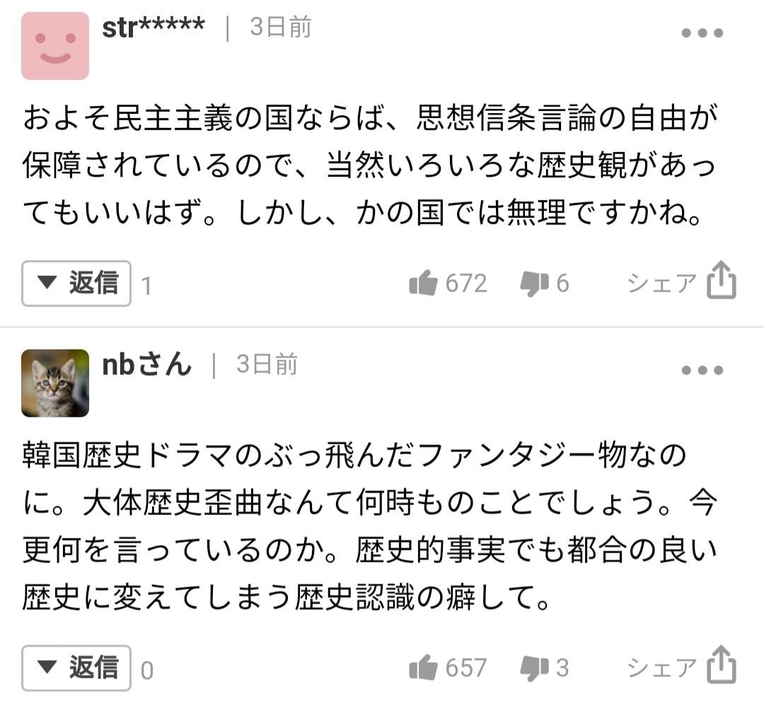 >한국 역사 드라마의 날아간 판타지물인데. 대체 역사왜곡이라니 언제적 일인가 이제 와서 무슨 말을 하는가 역사적 사실로도 유리한 역사로 바꾸어 버리는 역사인식의 버릇으로