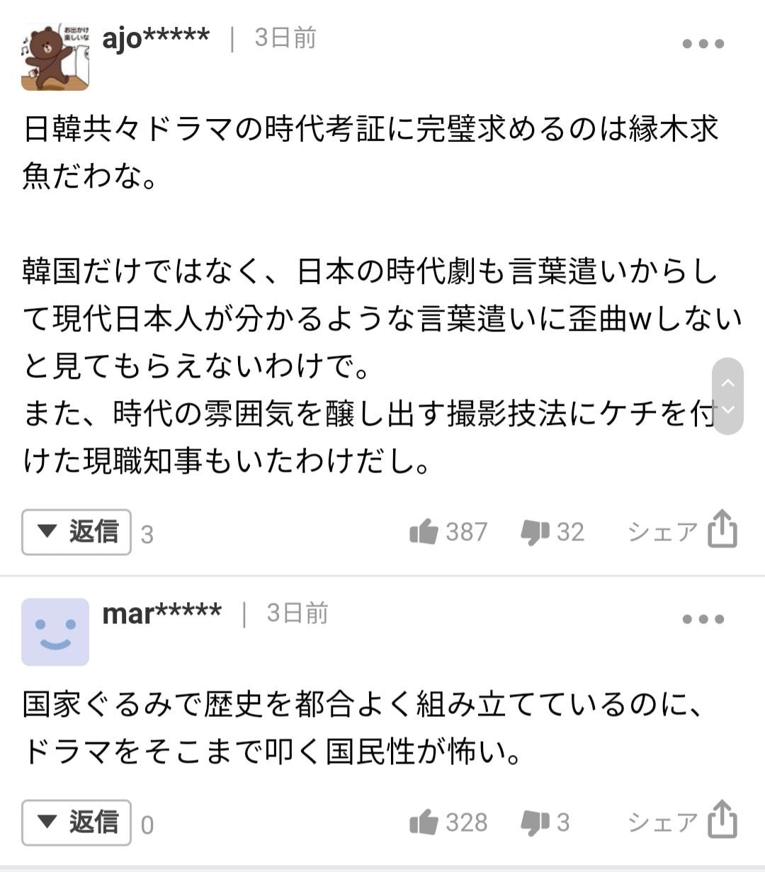 >국가적으로 역사를 유리하게 조립하고 있으면서 드라마를 그렇게까지 비난하는 국민성이 무섭다