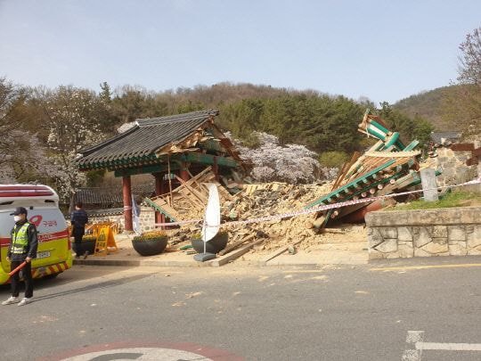 어제 오후 4시쯤 70대가 운전하던 승용차가 정문으로 돌진