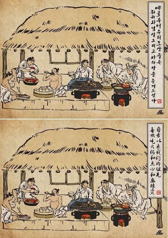 김홍도 풍속화에 훠궈, 딤섬, 마라탕 넣어서 역사적으로 우리꺼다 라며 풍자함