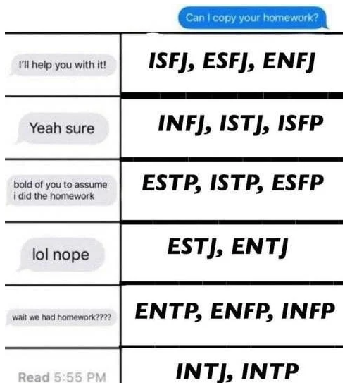 ESTP, ISTP, ESFP : 넌 내가 숙제를 했을 거라 생각해?