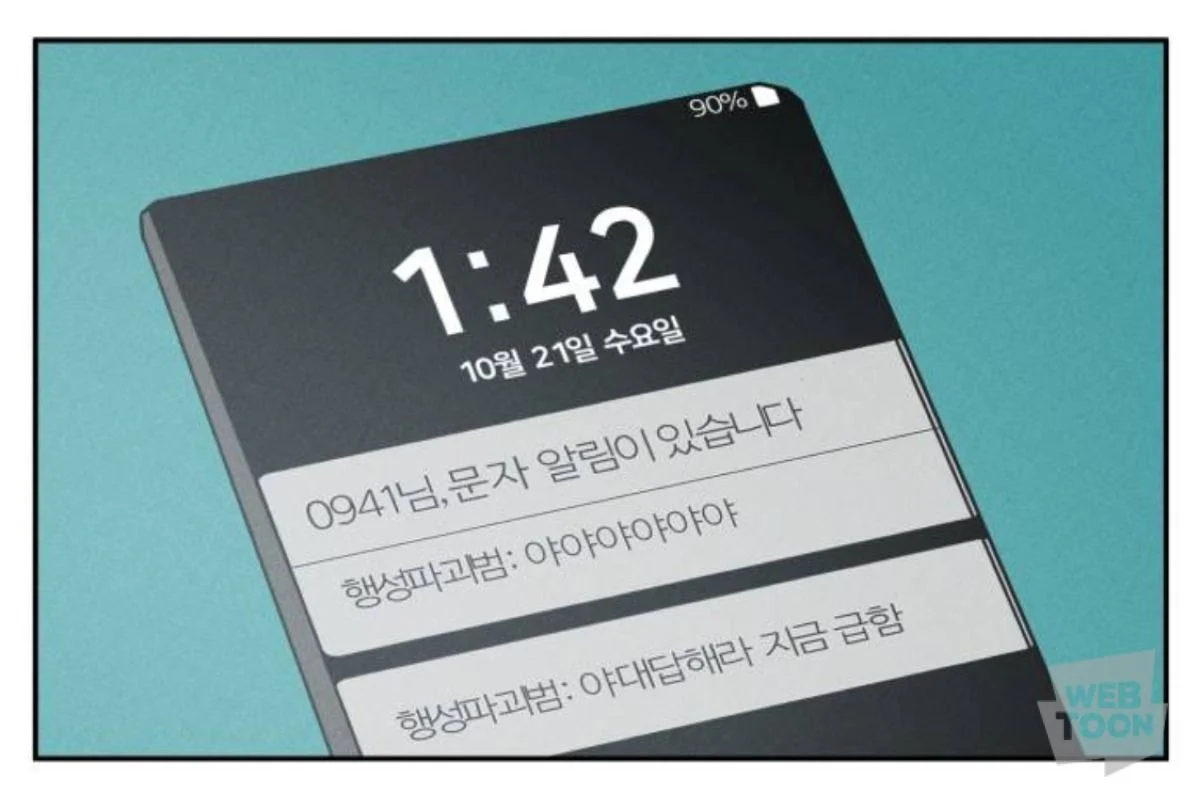 동생이 누군가와 나눈 메세지가 주인공에게 보이는 것