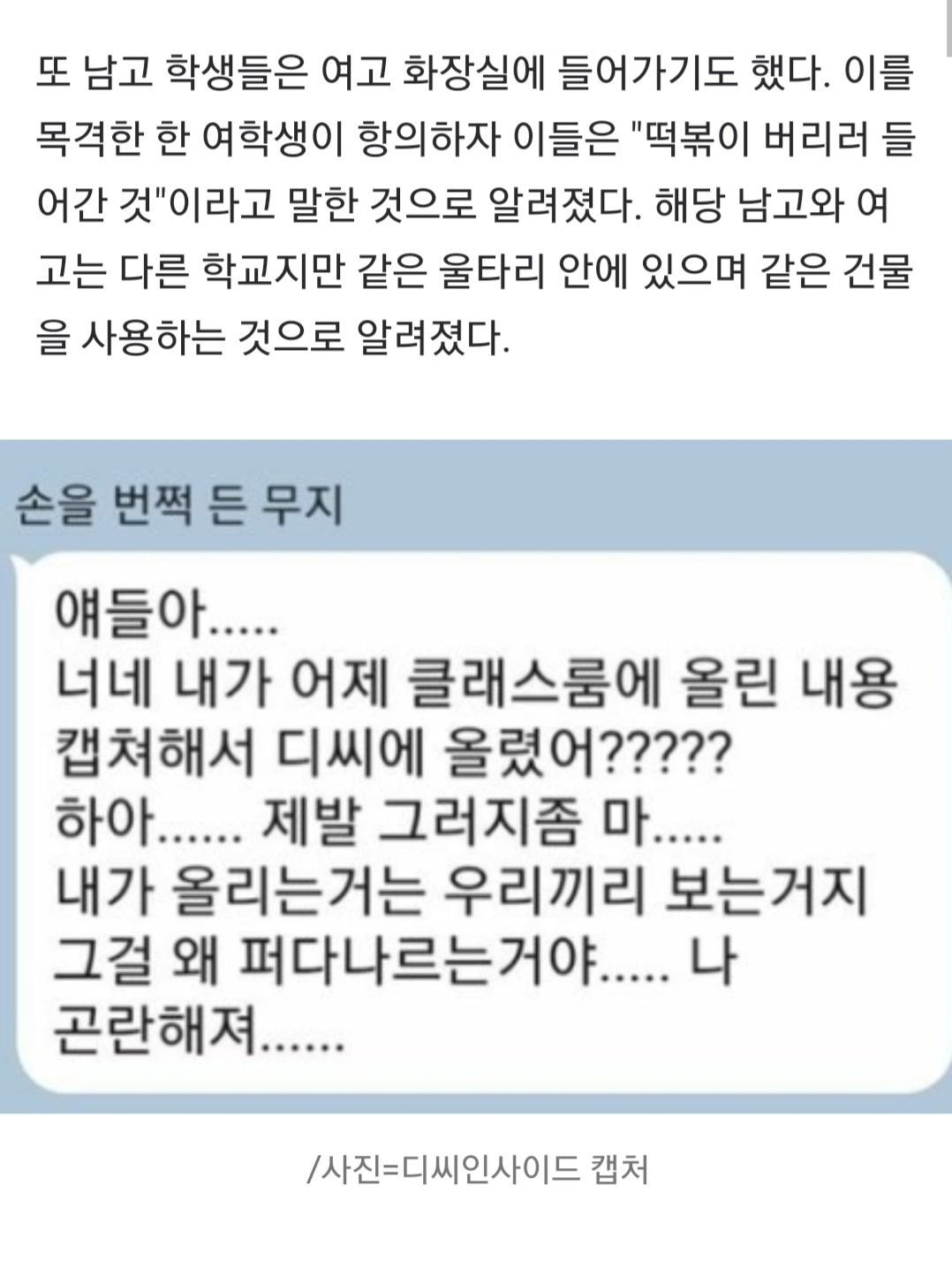 학교에선 자수하라 했다는데 카톡보면 교사가 왜 인터넷에 올리냐고 뭐라함
