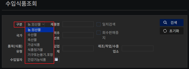 안전정보 > 제품 및 업체검색 > 수입식품조회 메뉴에 들어가면 되고