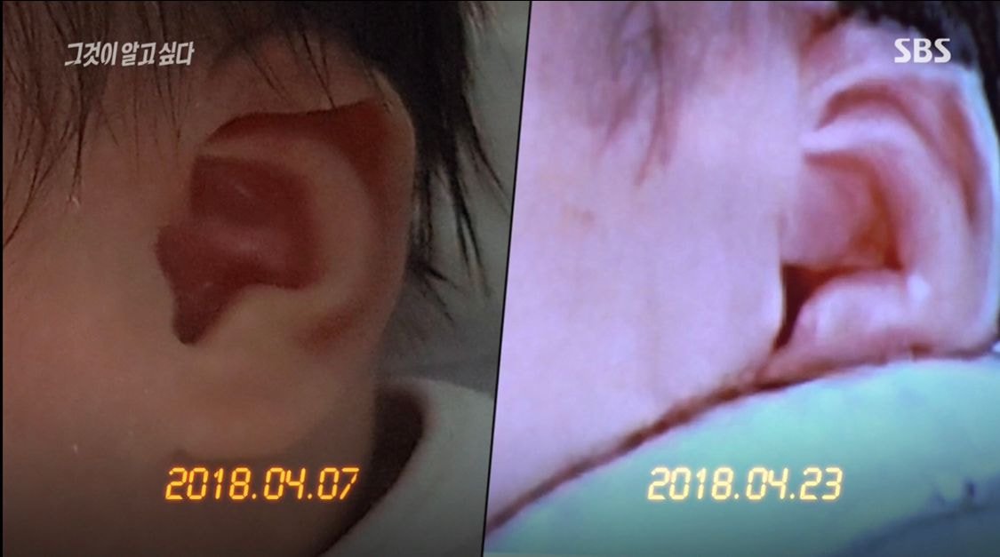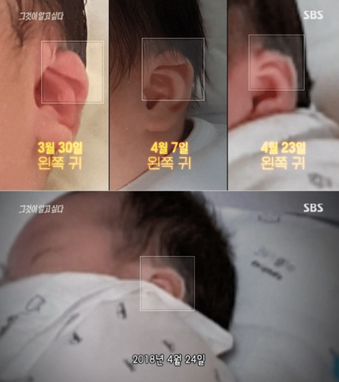 7. 사진 속 아기는 귀 부분에 살짝 기형이 있었던 것으로 보이는데 24일에는 귀에 문제가 없고 전문가들은 교정 없이 짧은 시간 내에 펴지는 것은 불가능하기에 다른 아이일 것이라고 추정