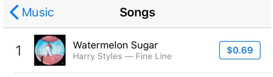 애플뮤직 음원 판매 가격은 1.29달러.