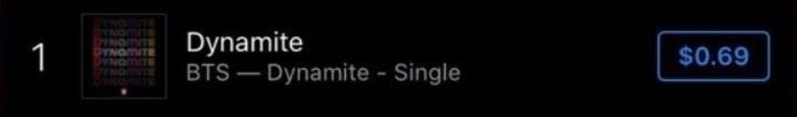 방탄소년단 다이너마이트 역시 덤핑할인을 적용해 정가 1.29달러가 아닌 그 절반 가격인 0.69달러에 판매를 시작했음.
