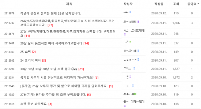 ‘○○살 남 스펙 평가 부탁드립니다’라는 제목의 글은 취업 커뮤니티에서 대표적인 고민 글 중 하나다. 아예 ‘스펙평가’라는 게시판이 따로 있을 정도다.