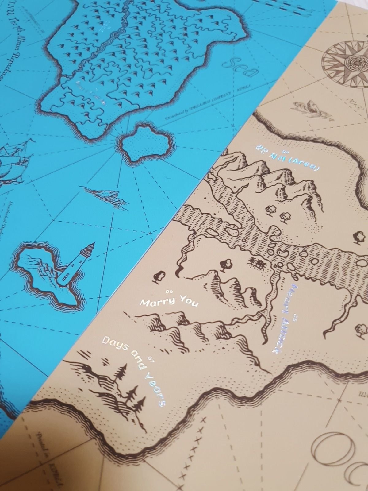 뒷면 지도에도 곡 이름에 홀로그램 박을 입혀서 포인트를 줌!