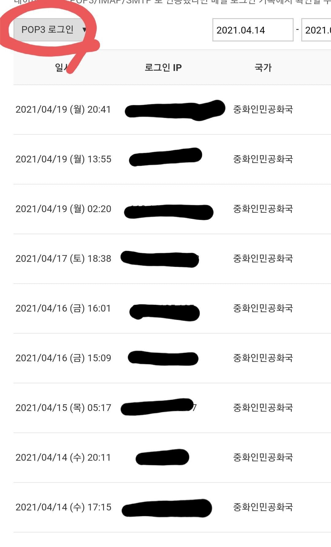 저 버튼을 누르면 POP3로그인일때의 기록도 나옴