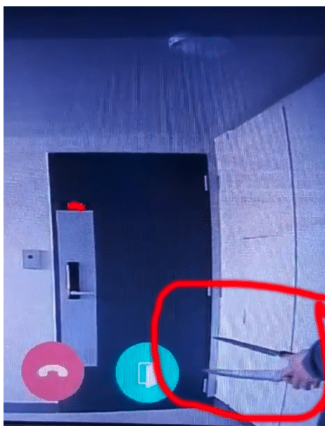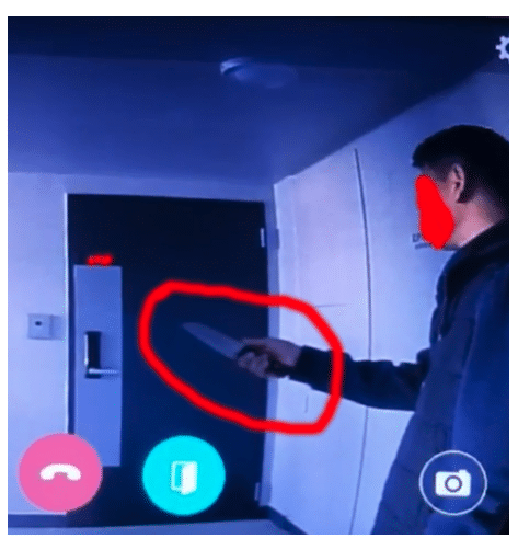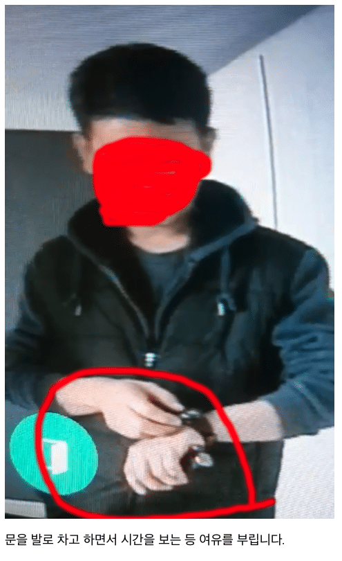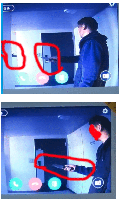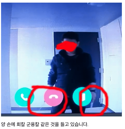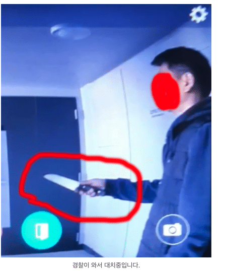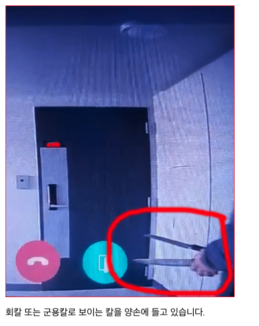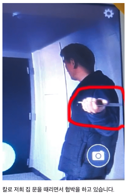 발로 문을 차고 칼을 문앞에서 휘두르고 하며 계속 알 수 없는 협박을 했습니다.