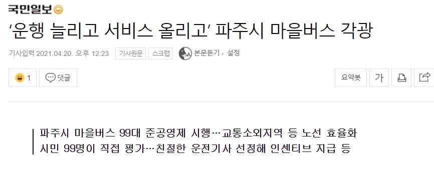 마을버스도 준공영제를 시행하잔 목소리도 있음