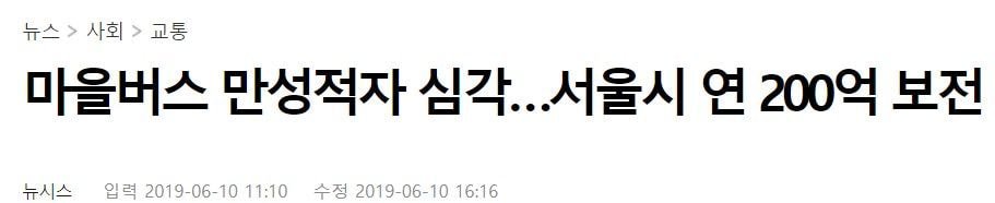 매년 마을버스 적자, 경영난 이야기가 항상 보도됨
