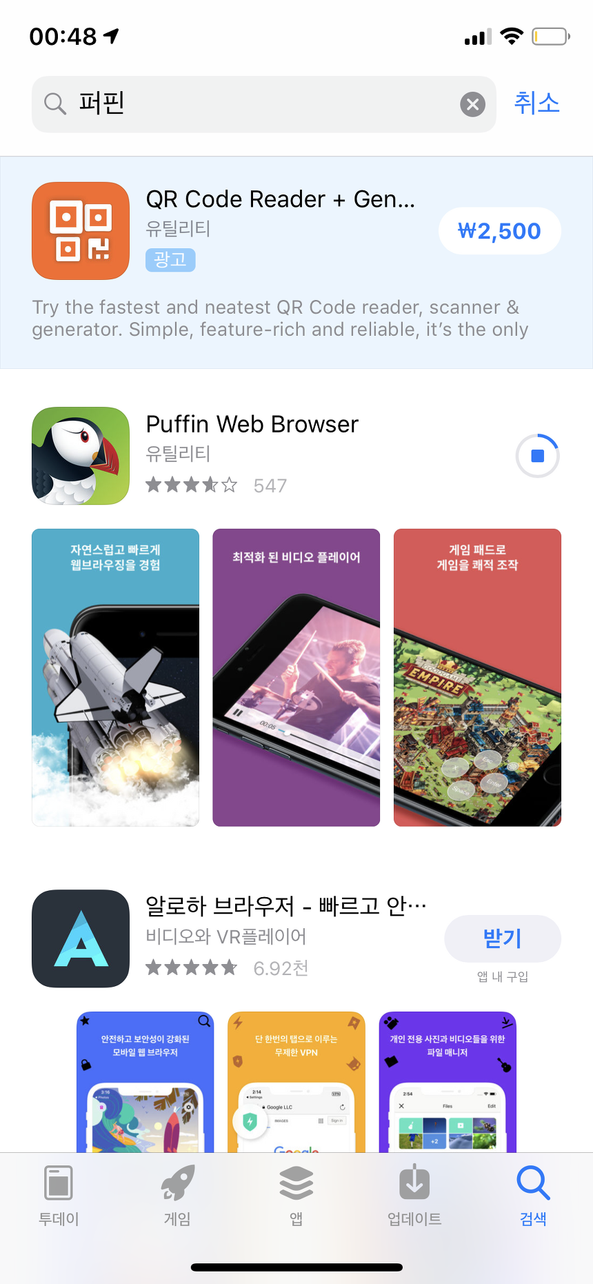 아래와 같이 퍼핀 브라우저를 다운받으시고