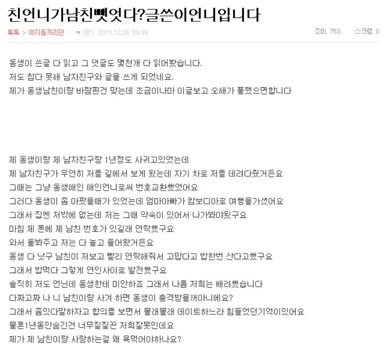차라리 언니가 아니라 모르는 여자였으면 좋겠어요..