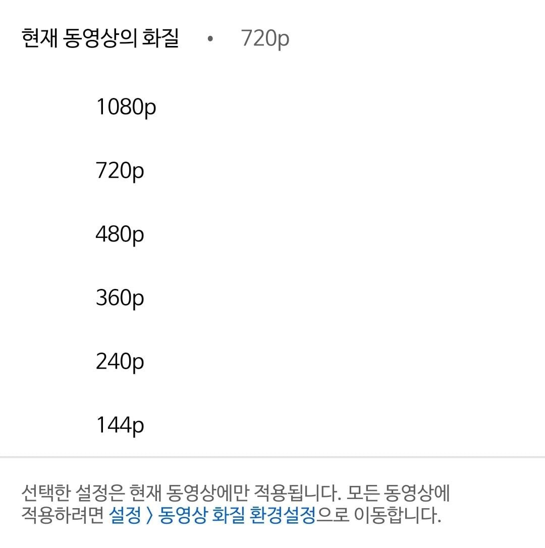 이번 업데이트로 영상에서 직접 설정하는 화질은 일회용이라서 설정에 들어가서 아예 높은 화질에 체크해줘야 매번 고화질로 나옴
