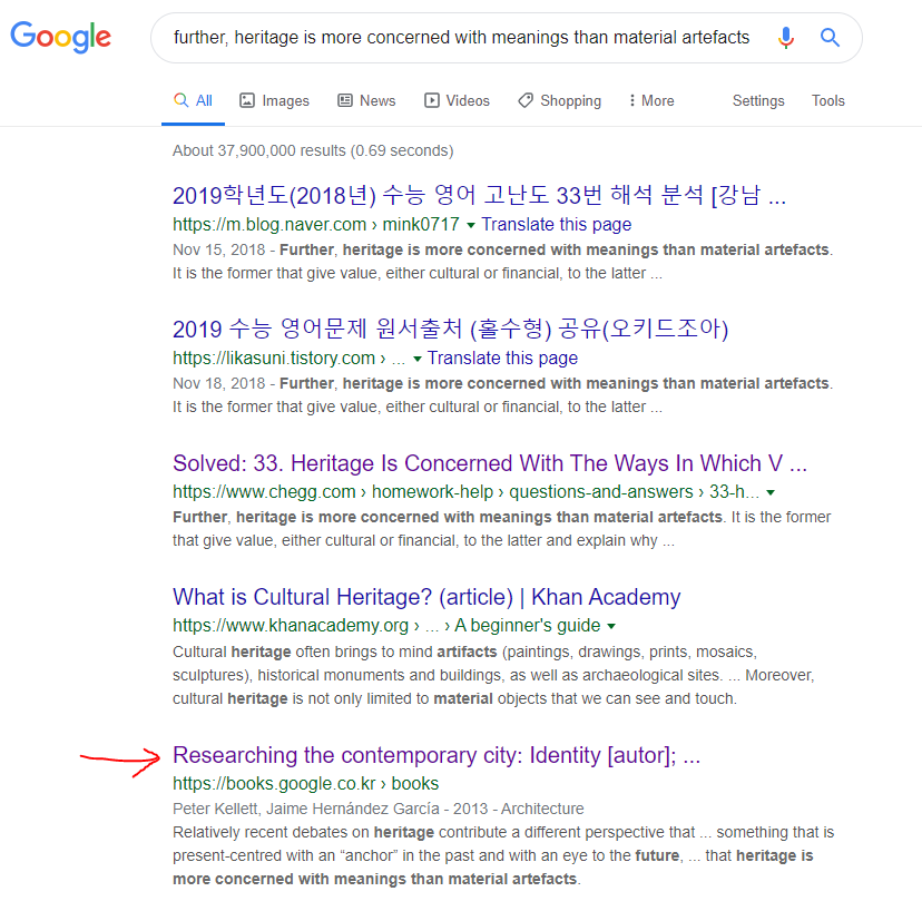 그리고 이런 어려운 영어 지문들은 대개, 문단에서 문장 하나를 빼서 구글에 검색하면 원전이 나온다.