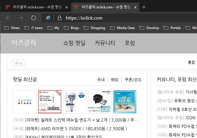 이제 엣지를 열고 ie-mode 로 보고 싶은 웹사이트로 이동하세요.
