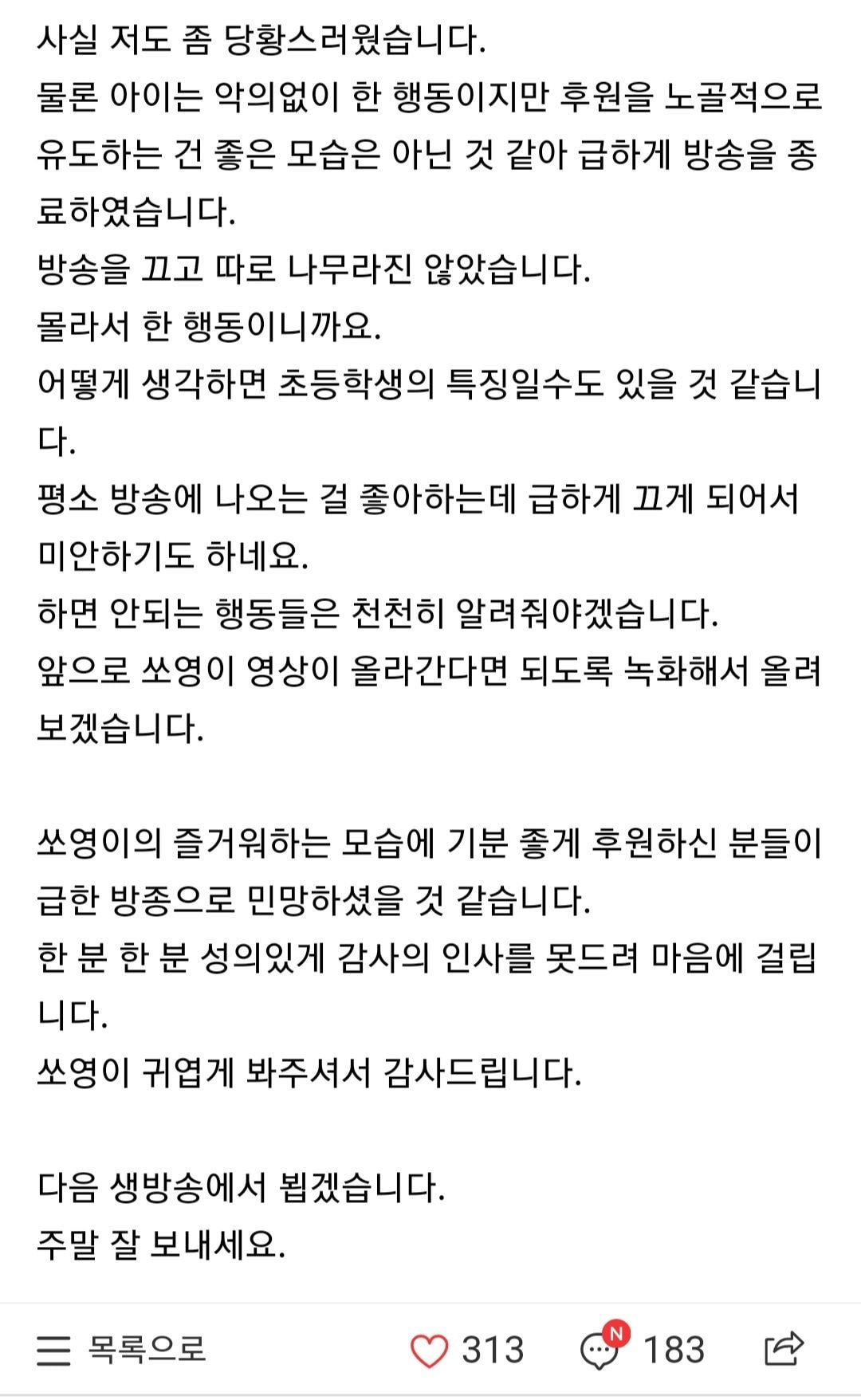초등학교 저학년 딸이 도네 내용을 읽어주자 귀엽게 여긴 시청자들이 계속 도네를 함