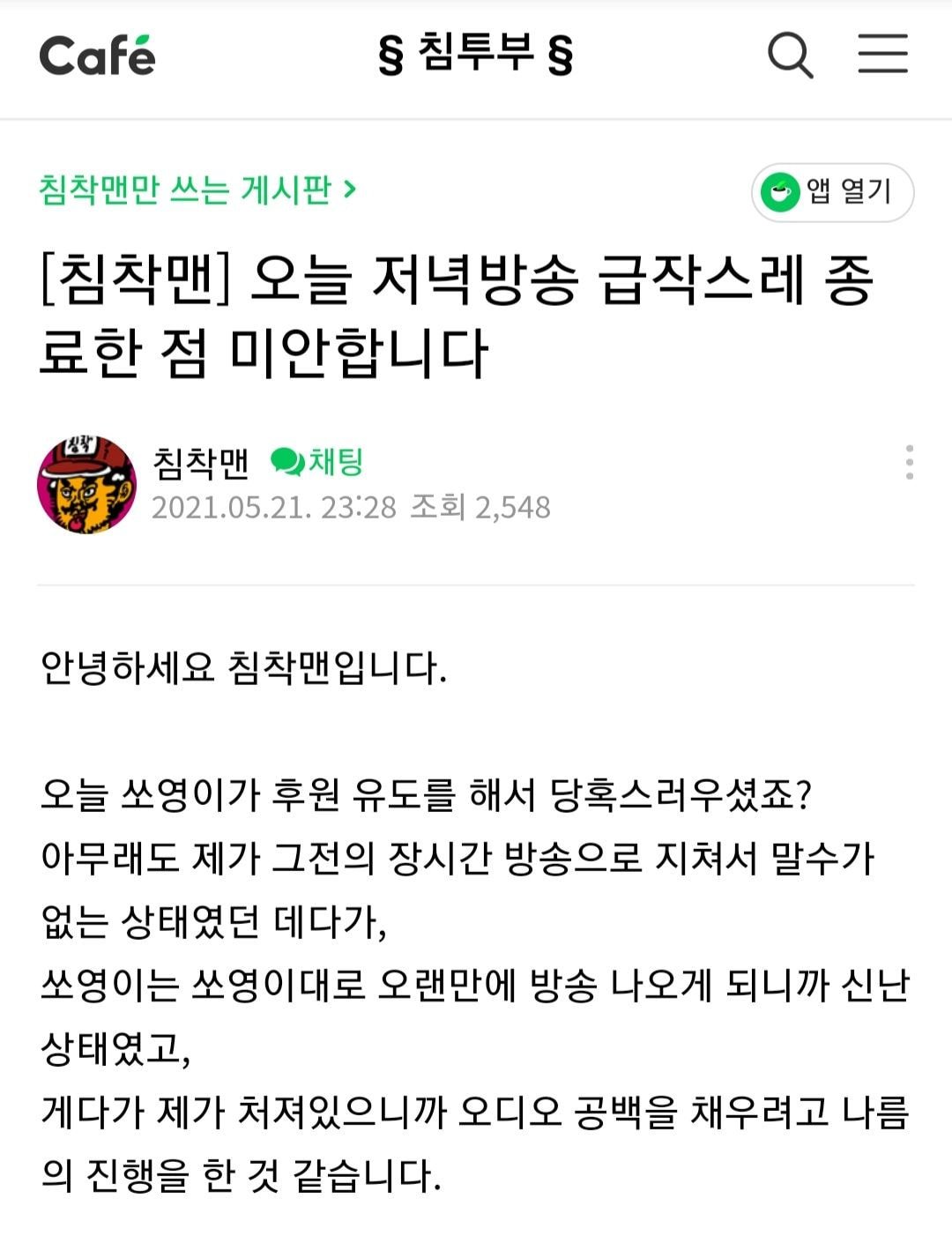 카페공지 올리기 전 상황