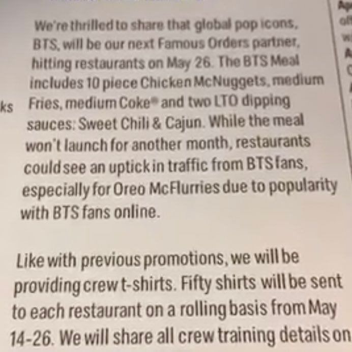 (대충 방탄팬들이 특히 오레오 맥플러리를 많이 주문할테니 대비하라는 내용)