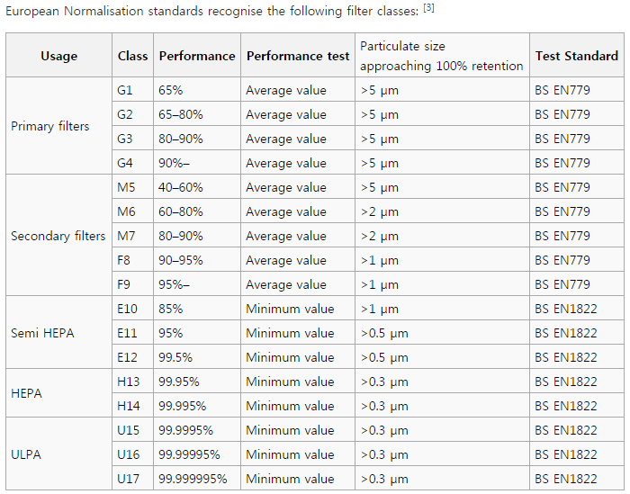 공기청정기 구매할때 필터 등급 궁금할때가 있더군요. 참고하시라고 올려봅니다.