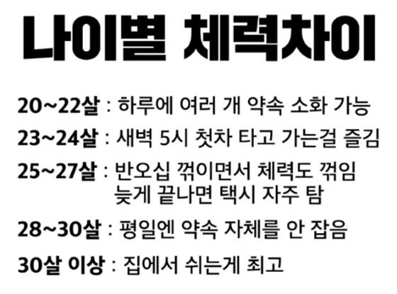 건강은 방심하면 한순간에 잃는다. 아직 버틸 수 있을 때 미리 건강 관리 잘하자. 개인적으로 위에 언급한 6가지 방법을 다 실천하고 있는데, 나이에 비해 얼굴 좋다는 소리를 들었다. 오랫동안 성인 여드름으로 고생했던 터라, 이 말을 듣고 건강 관리한 보람을 느꼈다. 체력 부족과 노화는 본인이 정신만 바짝 차리면 충분히 늦출 수 있다. 이 글을 읽는 모두가 나이 구애받지 않고 활력 넘치는 삶 살길 응원한다.
