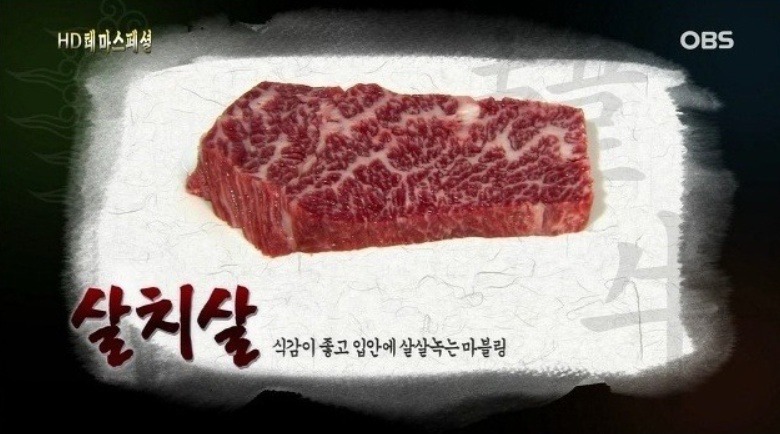 살치살 :윗등심살과 어깨부위 밑의 살로 삼각형으로 생긴 부위를 말한다.