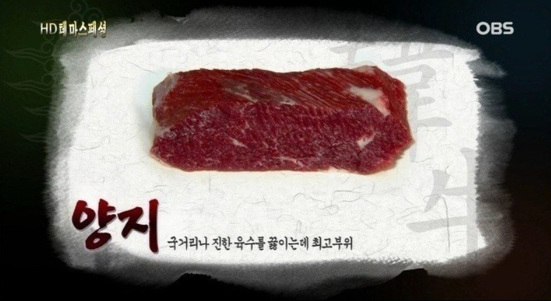양지머리: 소의 가슴에 붙은 뼈와 살을 아울러 이르는 말.