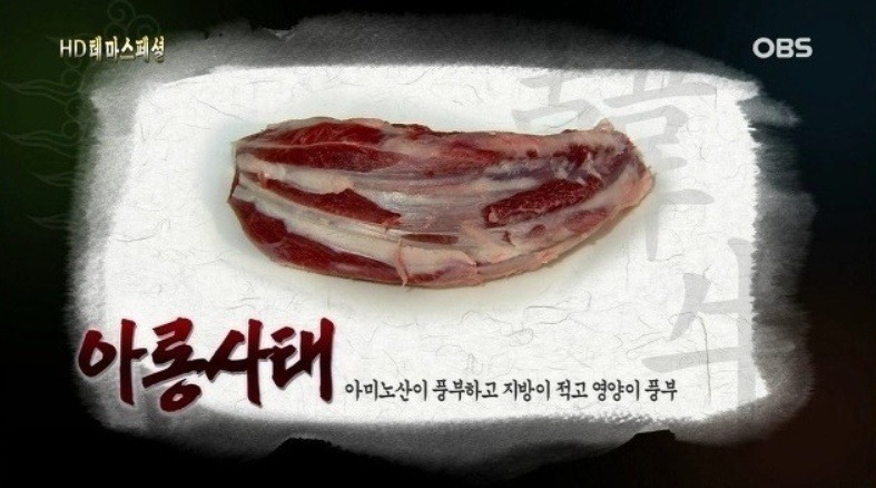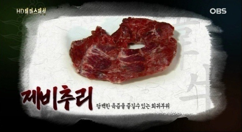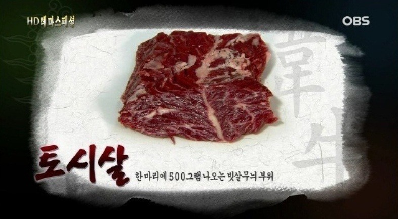 특징 : 막이 많고 근육이 비교적 거칠고 단단한 부위. 지방교잡이 있어 맛이 짙고 풍미가 있다.