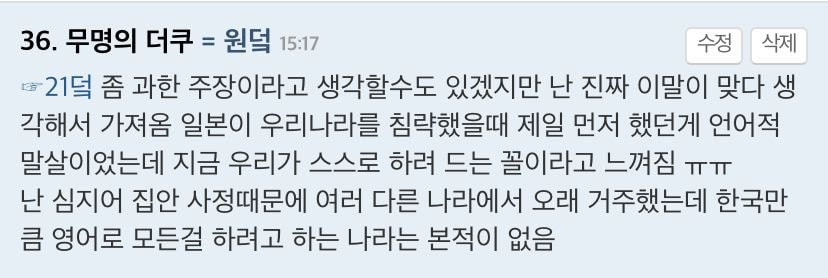 +) 댓글에 내가 하고싶은 말이 있어서 내 대댓이랑 같이 가져옴