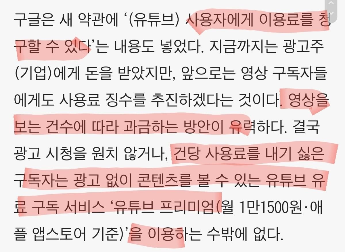 유튜브 보는만큼 돈 내거나 프리미엄 가입해야 함