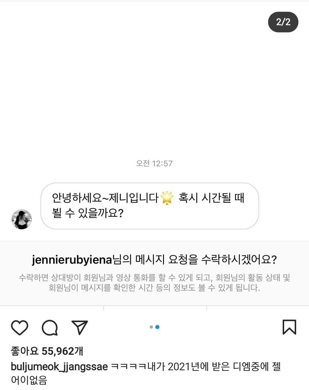 아래는 어제 영지 인스타에 올라왔던 제니 사칭 디엠 (일명 폰제니)