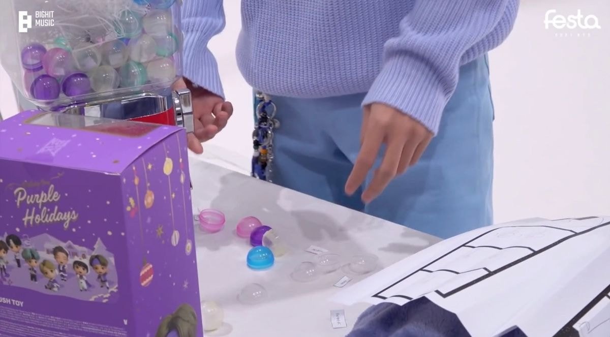 요리조리 경품을 훑어보던 뷔는 다시 뽑기를 돌린다