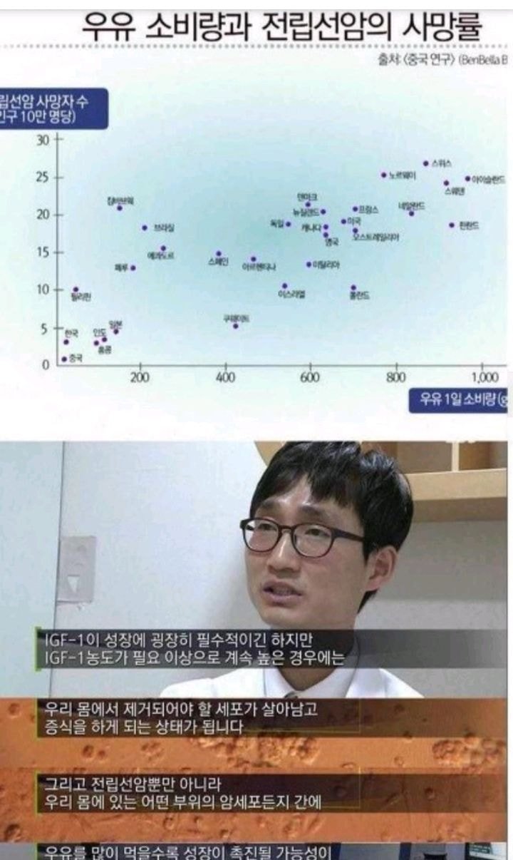 우유를 많이소비할수록 더 골다골증 및 전립선암 발병률 높아짐