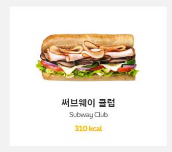 서브웨이클럽 메뉴는 속재료가