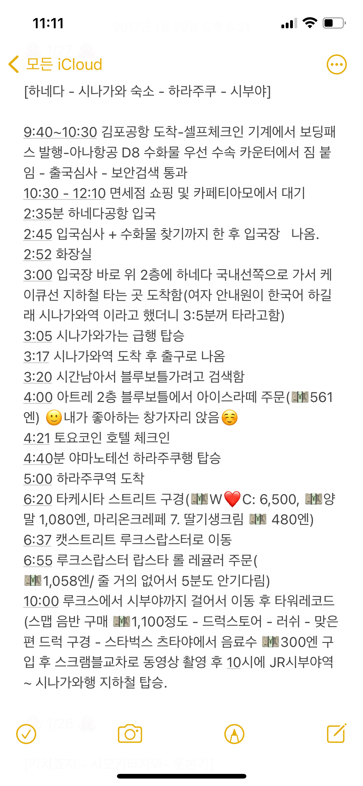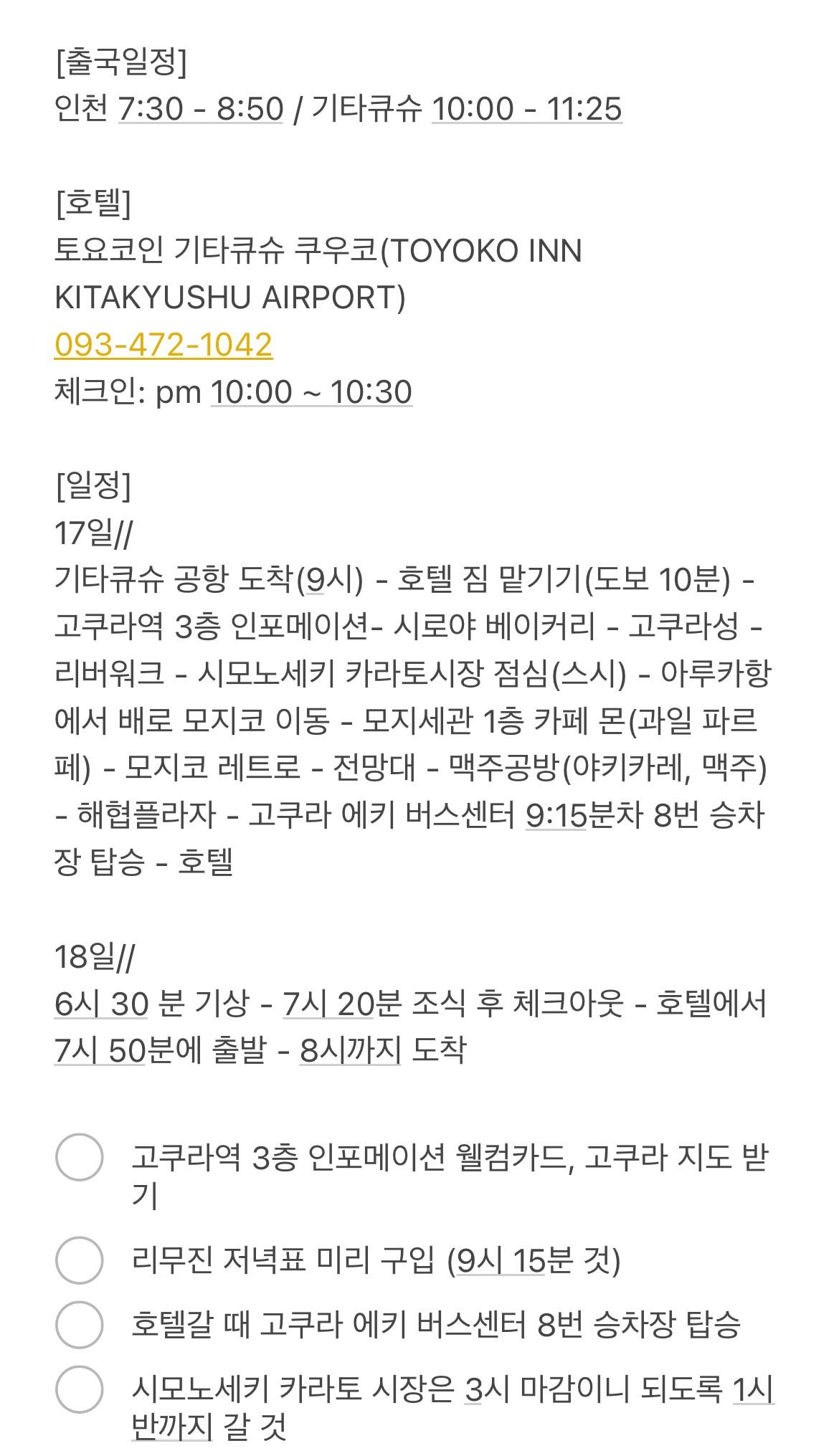 폰 메모장 : 엑셀자료를 토대로 한 현지에서 볼 간략 일정표