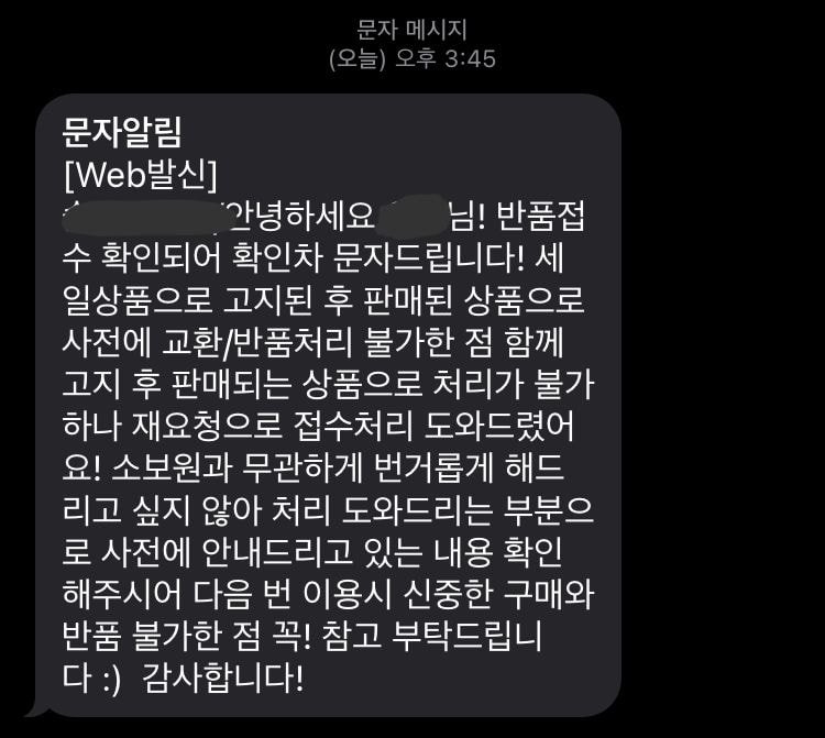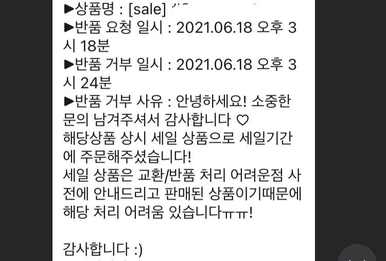 반품 주문 넣자마자 바로 거절해버리더라? 이런 경험은 또 처음이라 알아봤지