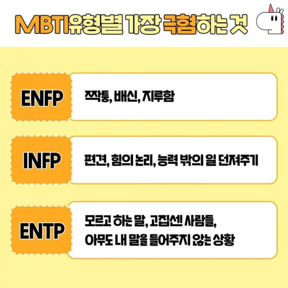 재미로 보는 MBTI - 유형별 가장 극혐하는 것