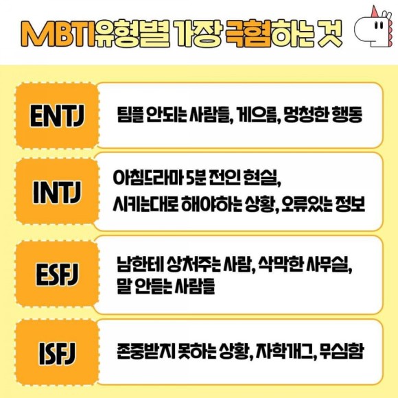 재미로 보는 MBTI - 유형별 가장 극혐하는 것