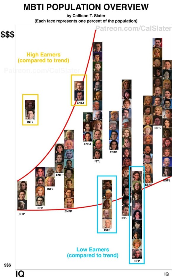 ENTJ -인구비중 2%, IQ순위 중(7위), 소득순위 상(5위)