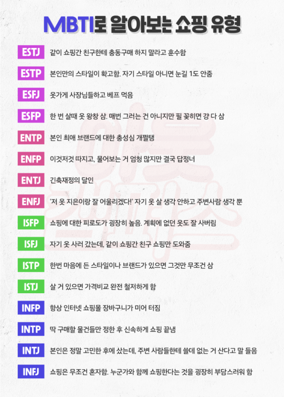 재미로 보는 MBTI - 유형별 쇼핑 스타일